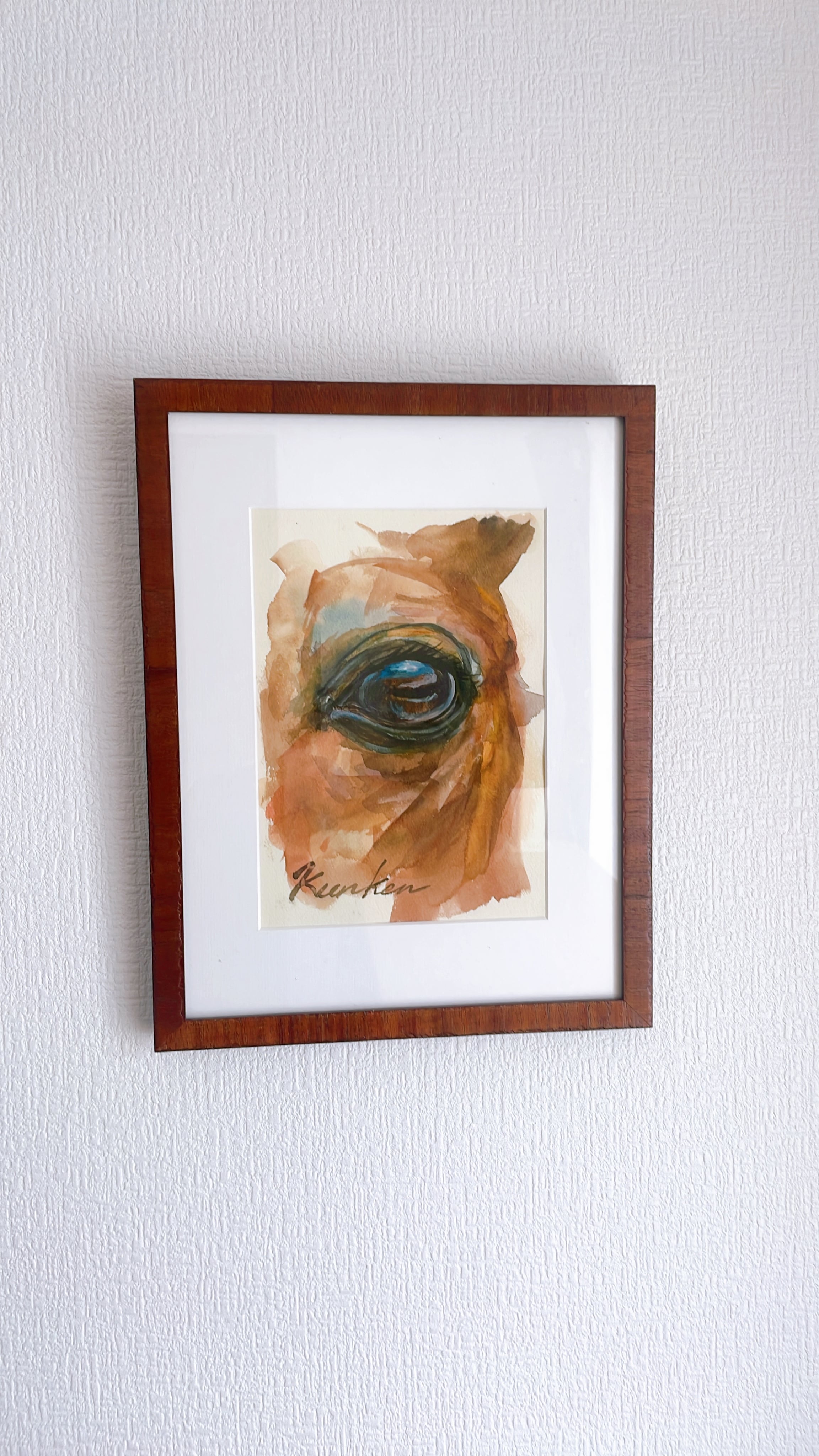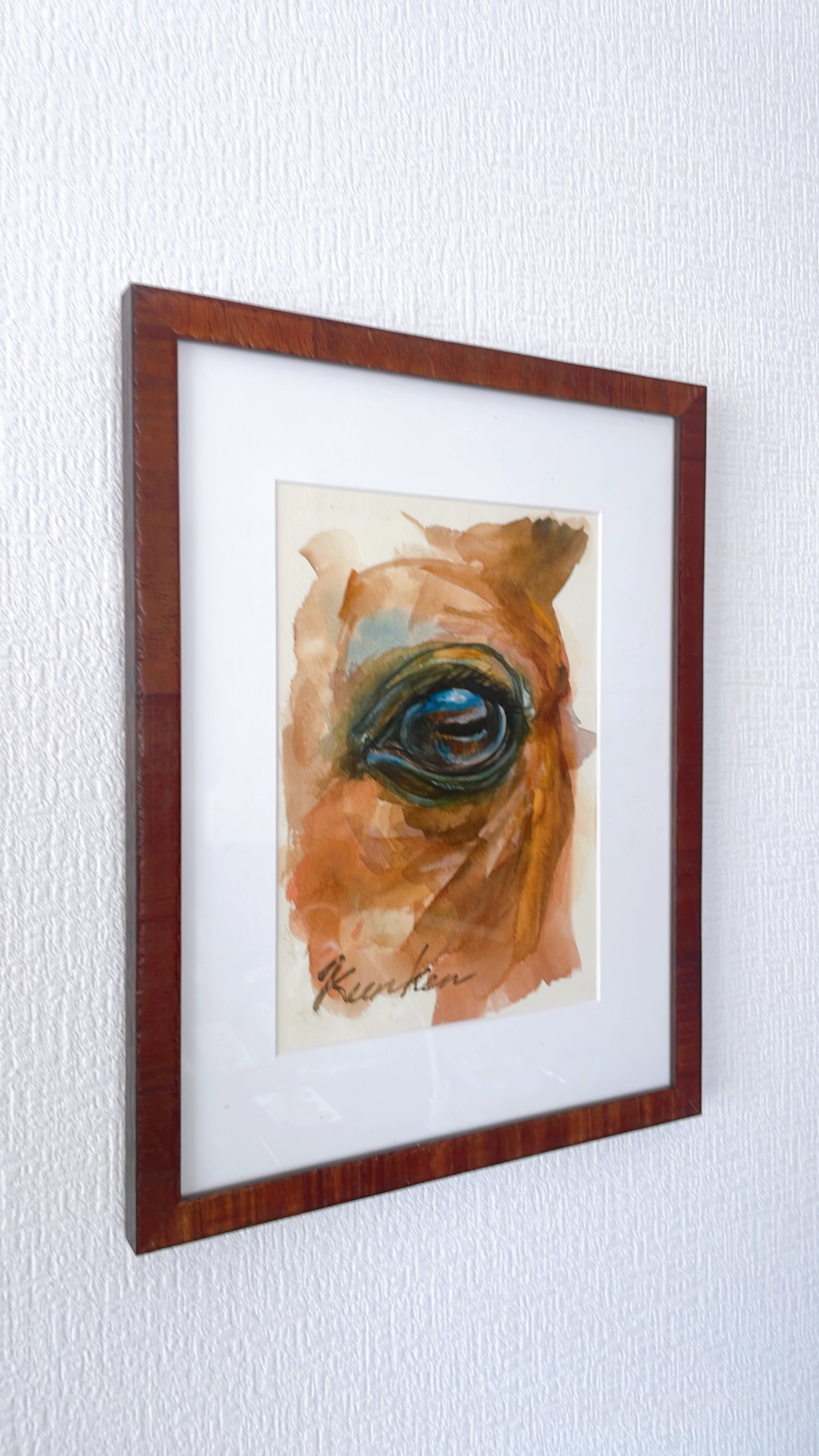 美しい馬の瞳があなたの心を優しく見守る、特別な透明水彩画『優しく見護るよ』。この作品は、絵画芸術の深さと、自然の美しさを融合させた一枚です。精緻な筆致で描かれた馬の瞳は、見る人に安心感と癒しを与え、日常のストレスを和らげることでしょう。額縁は木目調で、ナチュラルな風合いと温かみを持ち、どんなインテリアにも調和します。自宅のリビングや寝室、オフィスのデスク上に飾ることで、心の安らぎを感じる空間を演出してくれます。